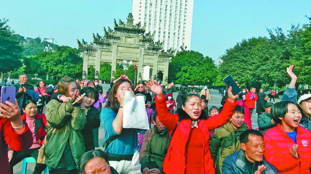 随后,川戏折子戏《拜新年》让观众笑声不断,演员们表情丰富,川戏功底深厚,将剧中人演得活灵活现;《家和万事兴》唱出了老百姓的幸福感和所思所想所盼;长绸舞《盛世霓裳》展示了川戏中的水袖功夫,演员宛如仙女下凡。