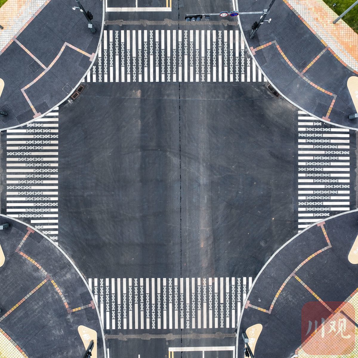 走在成都分院园区内,每个十字路口的斑马线都经过了特殊设计,上面印着DNA双螺旋、化学分子式、二进制代码、博士帽、显微镜等主题图案。