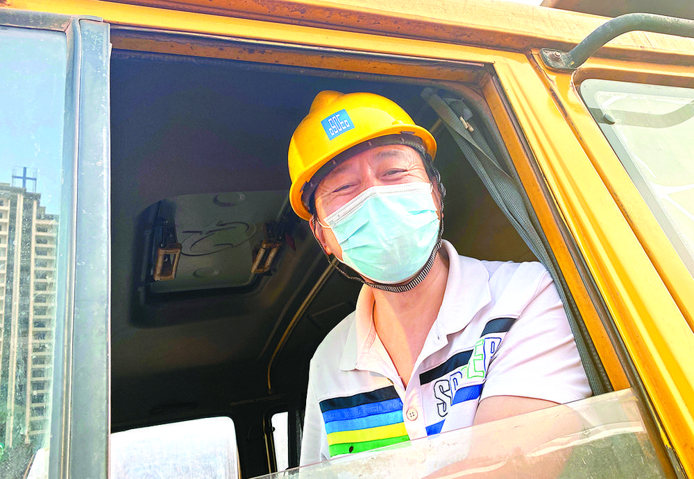 截至10月1日下午4点,驾驶员赵文才已经开着渣土车在工地上跑了20多趟。热辣的阳光透过车窗照进驾驶室,额头不断渗出汗水,他也懒得揩,双手握着方向盘不肯放下来,一车接一车运送渣土,毫无倦态。