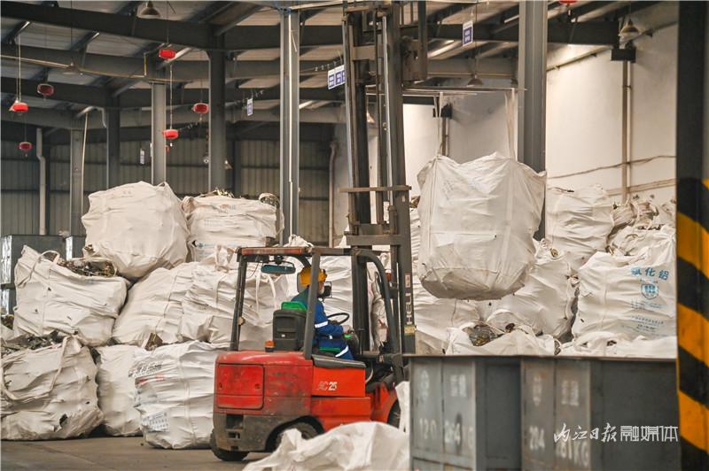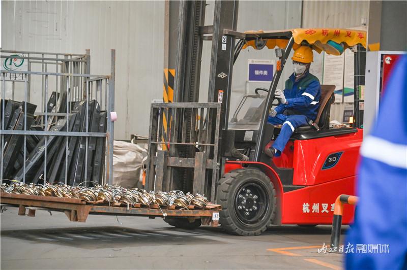 记者走进厂区,各个车间内机器轰鸣声不断。在各生产车间,工人们头戴安全帽、身穿工作服,在搬运、拆解、清洁、分拣、转运、称重等不同区域作业。