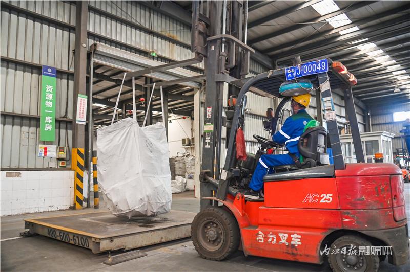 10月31日,位于内江市东兴区椑木镇的四川中再生资源开发有限公司,生产车间现代化机械设备及生产流水线正在高速运转,工人们各司其职,现场一派忙碌景象。