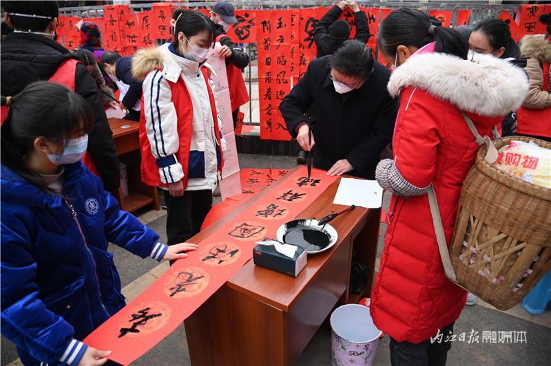 现场,写春联送祝福活动也是一派热闹景象。书法家们挥毫泼墨,为现场观众书写春联和福字,一张张红红的春联和福字增添了浓厚的节日氛围。