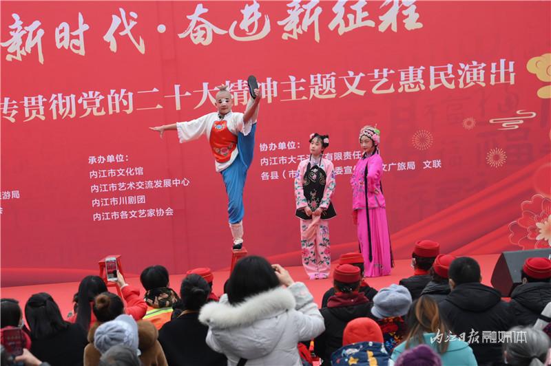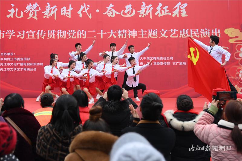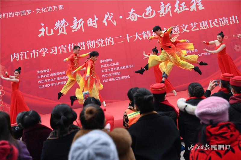 1月4日,“礼赞新时代·奋进新征程”学习宣传贯彻党的二十大精神主题文艺惠民演出在内江市威远县新店镇举行。