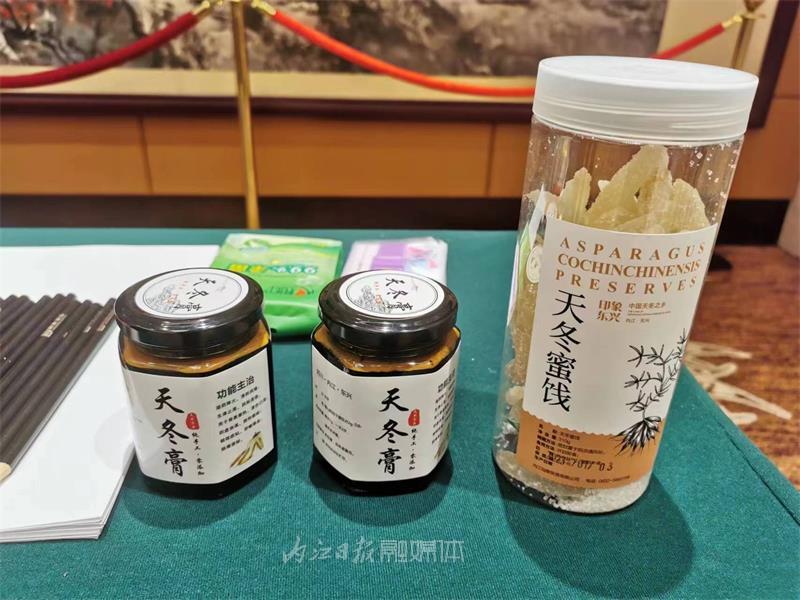 会场公共区域资料摆放区,天冬膏、天冬蜜饯、天冬盆栽的惊喜“亮相”,吸引了代表们的目光,纷纷上前仔细“研究”,探寻天冬的“真实面貌”。