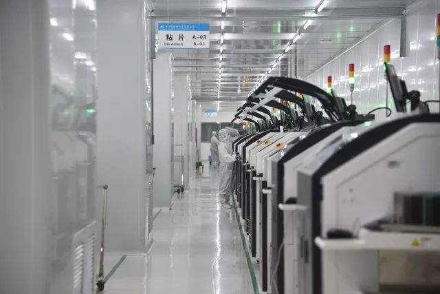 距离四川绿建杭萧钢构有限公司不远的四川明泰微电子有限公司生产车间内也是一派火热的生产景象,工人们穿着无尘服正在粘片、焊线、测试生产线上忙碌着。