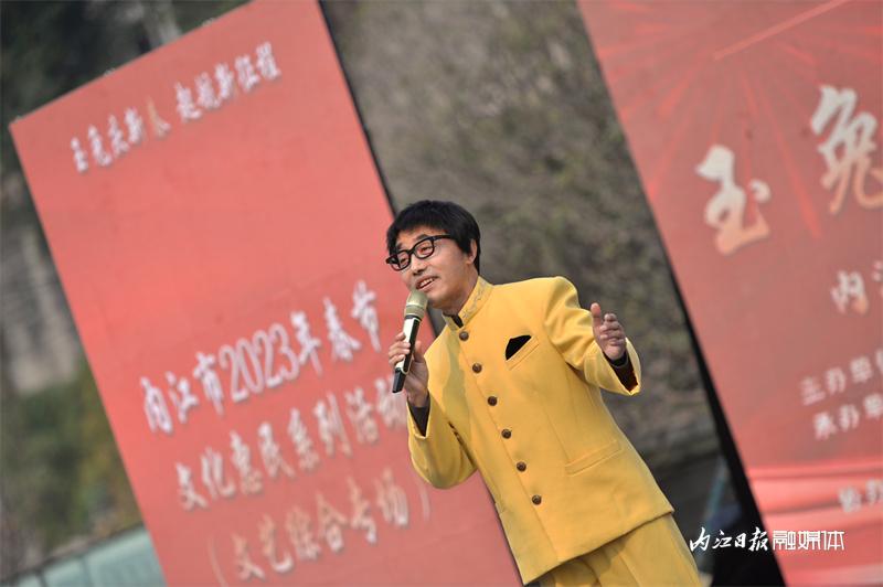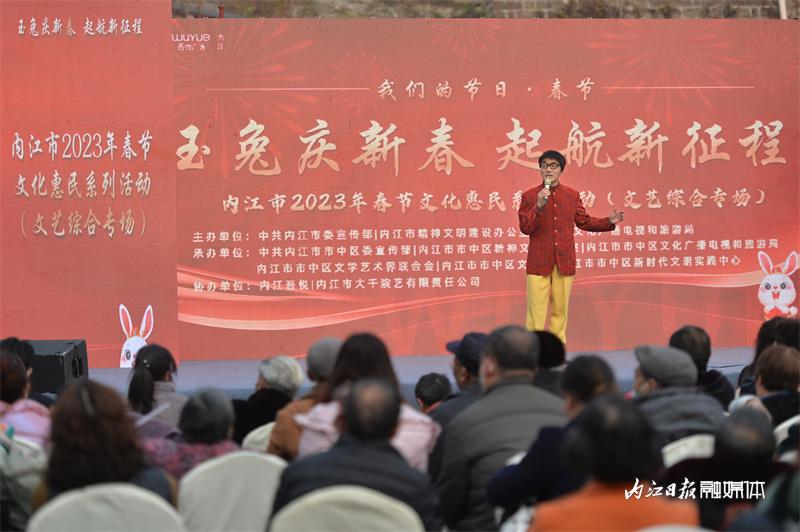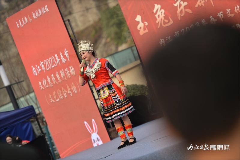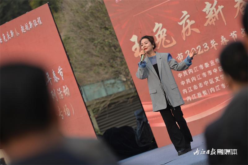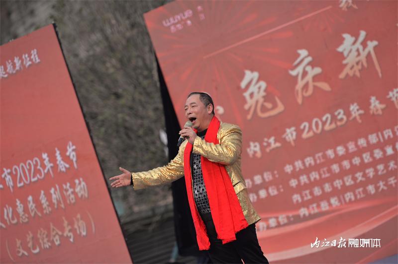 ▲2月1日,内江市2023年春节文化惠民系列活动在吾悦广场举办,图为歌唱演员演唱歌曲《延河情深》。
