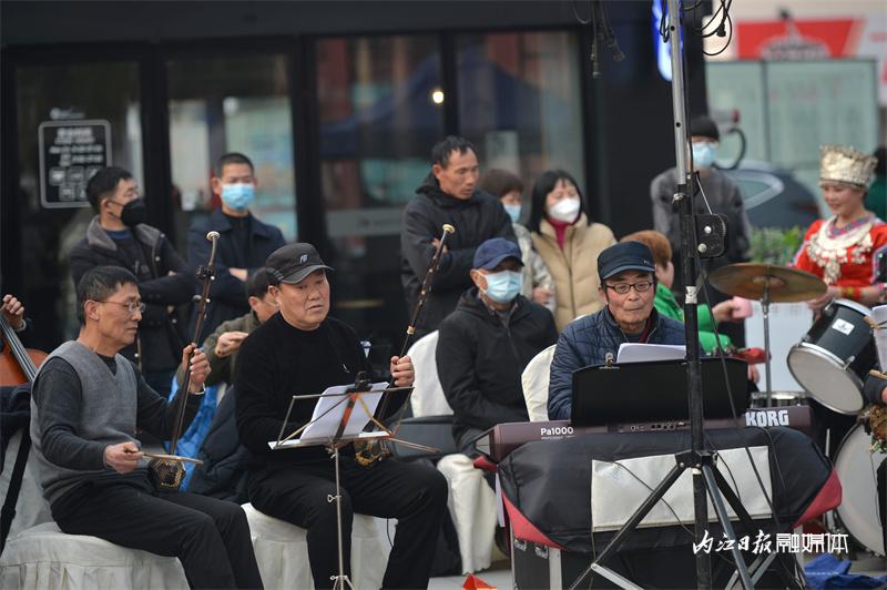 ▲2月1日,内江市2023年春节文化惠民系列活动在吾悦广场举办,图为乐队演奏。
