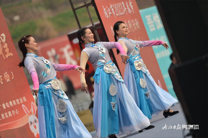 ▲2月1日,内江市2023年春节文化惠民系列活动在吾悦广场举办,图为舞蹈演员表演舞蹈《再唱山歌给党听》。