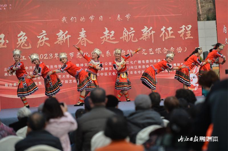 ▲2月1日,内江市2023年春节文化惠民系列活动在吾悦广场举办,图为舞蹈演员表演舞蹈《哆嘎哆耶》。