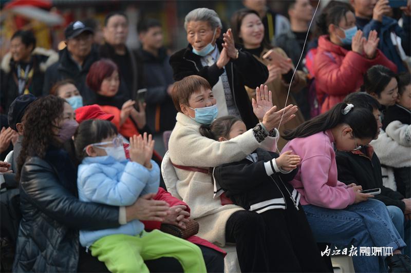 ▲2月1日,内江市民在吾悦广场观看内江市2023年春节文化惠民系列活动文艺演出中报以热烈掌声。