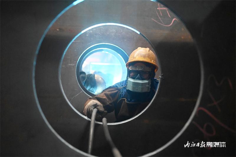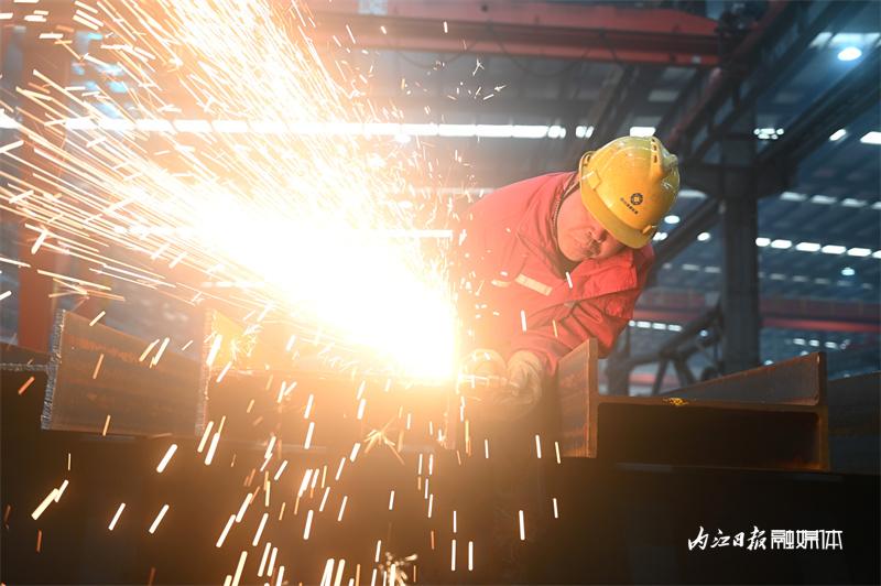 ▲2月2日,内江高新区白马园区,四川绿建杭萧钢构有限公司的工人在加工钢构件。