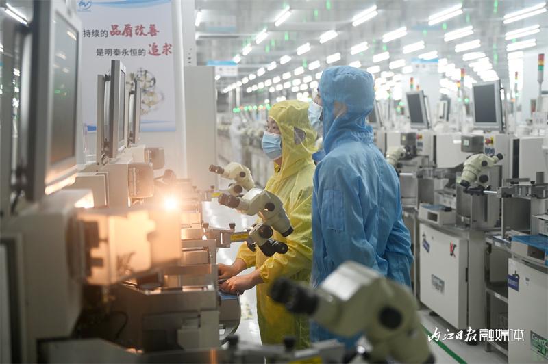 ▲2月2日,内江高新区白马园区,四川明泰微电子有限公司的工人在测试车间内忙碌。