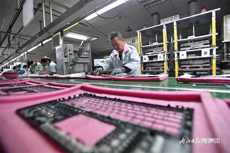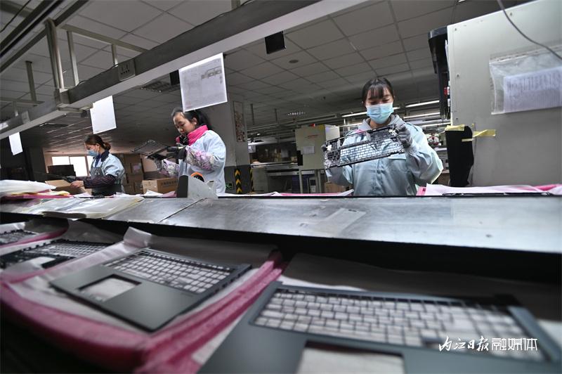 ▲2月2日,内江经开区,巨腾(内江)资讯配件有限公司的工人在组装笔记本电脑外壳。