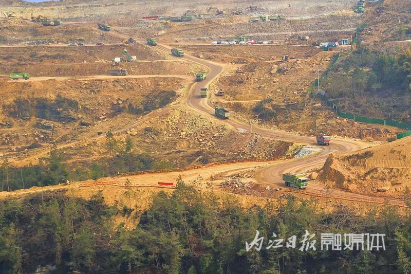 工程车辆穿梭工地,开展运输工作(余远文 摄)