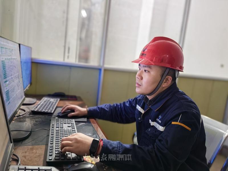 此时,在忙碌的车间总能看到电仪组副组长杨威的身影:他头戴安全帽,身穿工作服,斜挎工具包,握着手电,在生产现场仔细观察设备的运行状况,为自动化、智能化生产“保驾护航”。