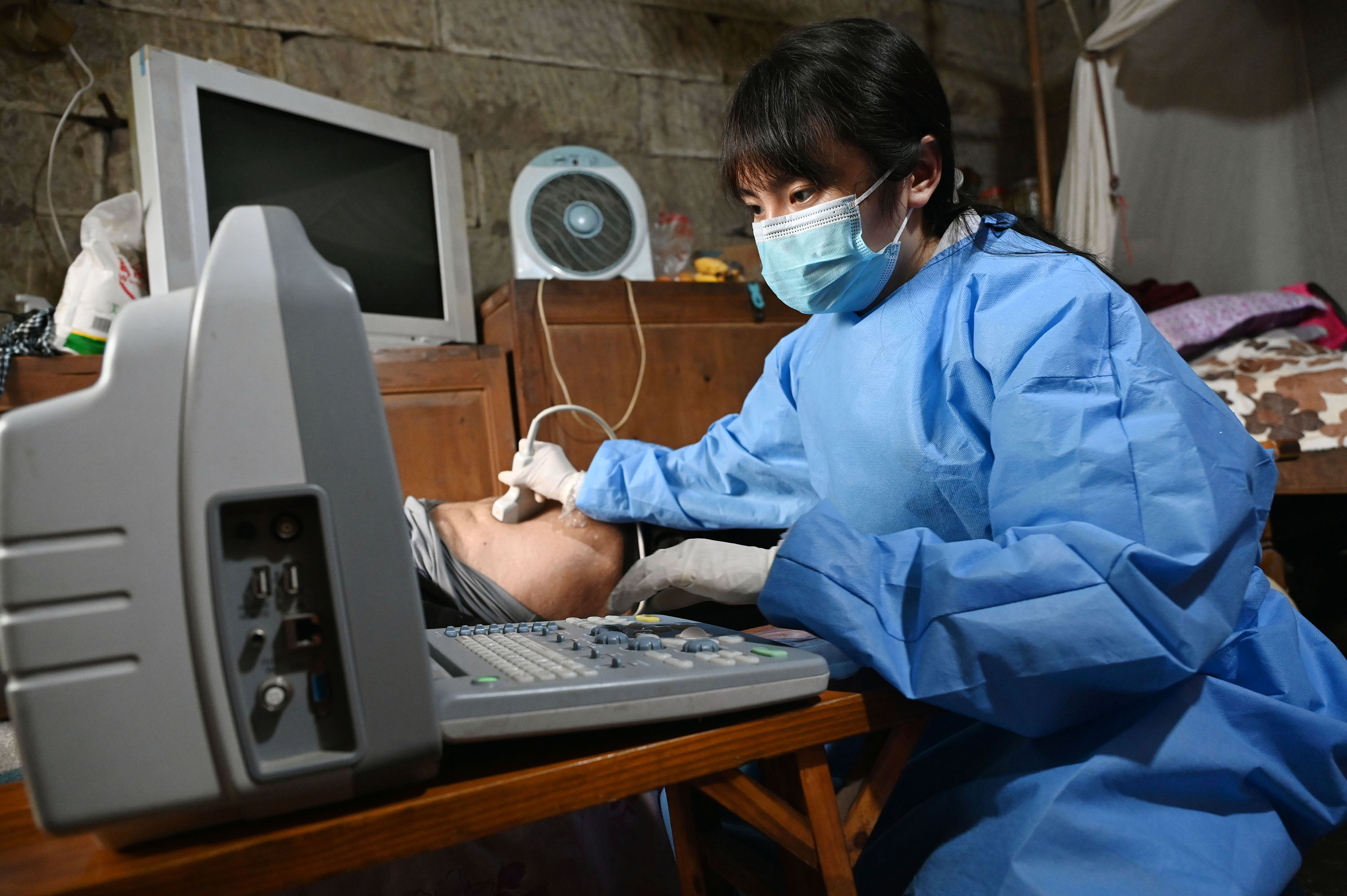 4月20日,家庭医生在内江高新区高桥街道楠桥村为留守老人做B超检查。