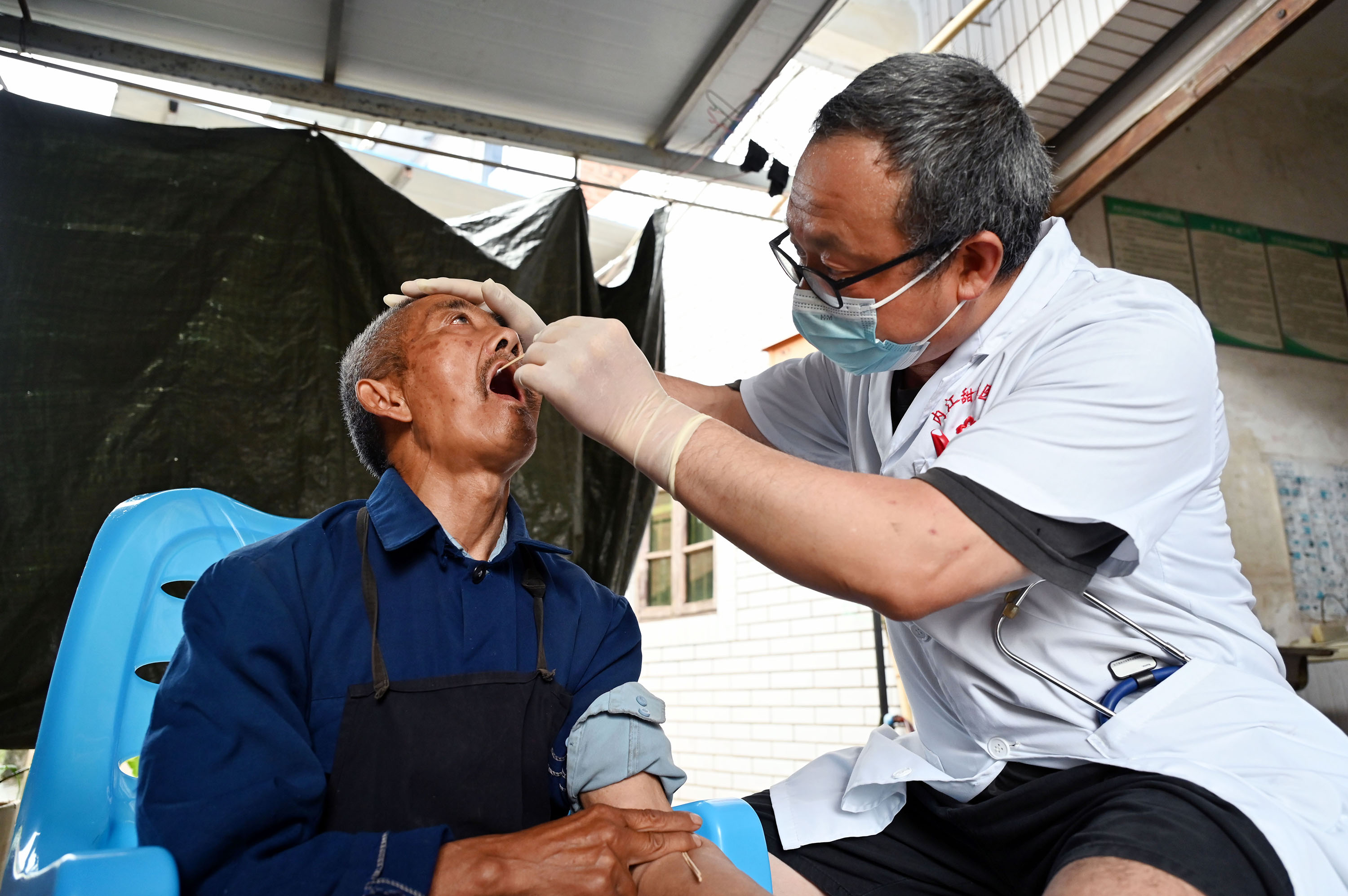 4月20日,家庭医生在内江高新区高桥街道楠桥村为留守老人检查口腔。