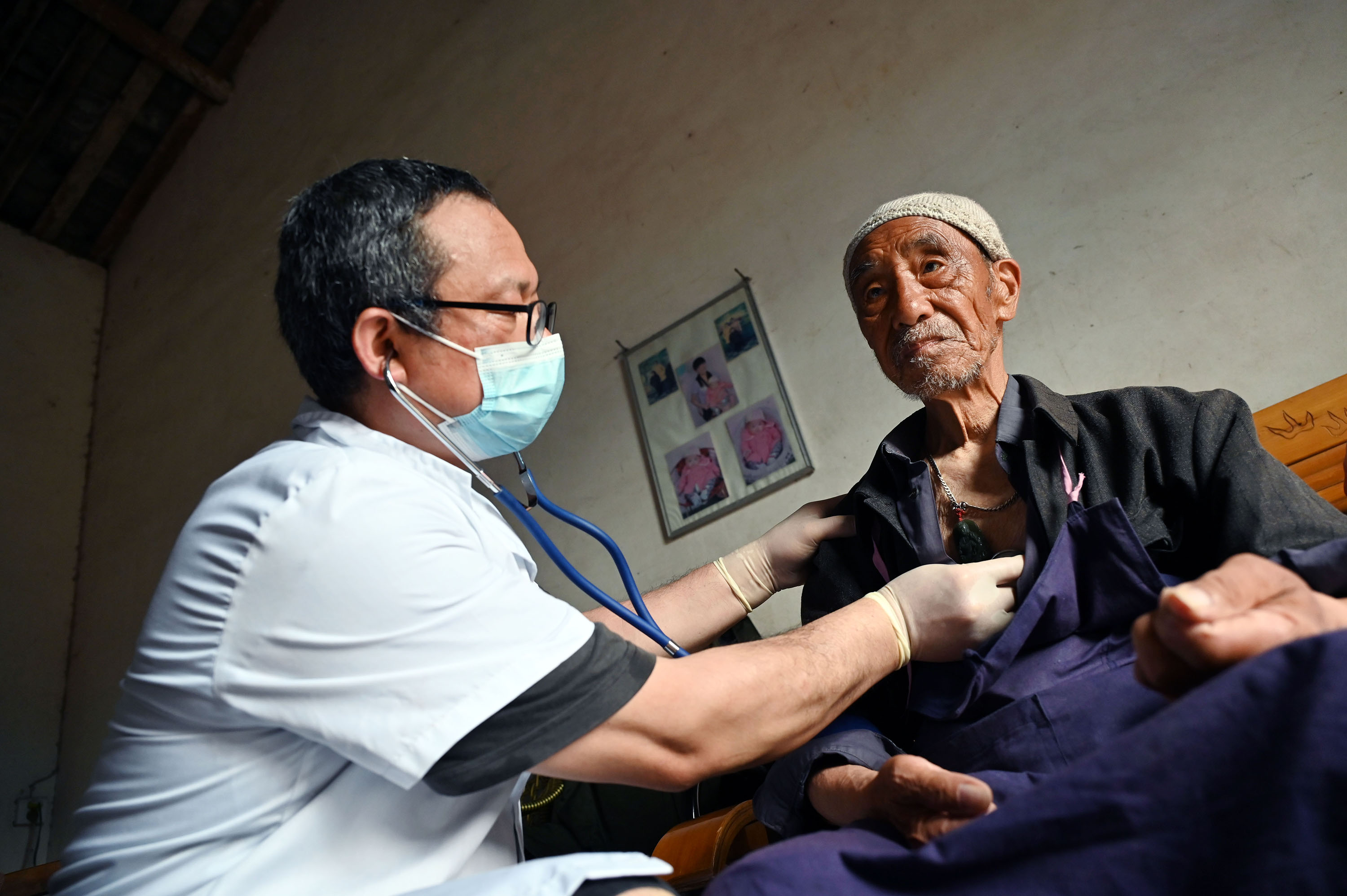 4月20日,家庭医生在内江高新区高桥街道楠桥村为留守老人做内科检查。