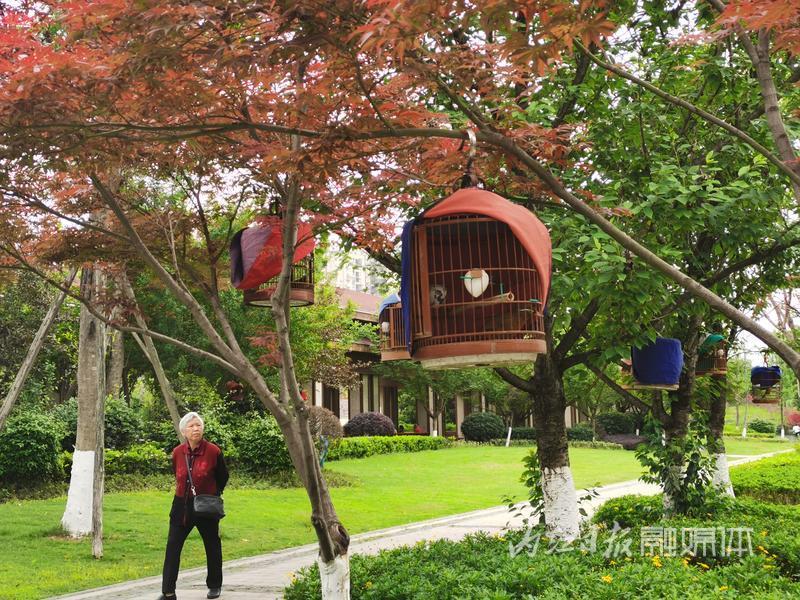 走进广场,记者看见广场内张贴了不少与社会主义核心价值观、文明旅游、志愿服务、文明礼仪、文明养宠、垃圾分类等与创建文明城市相关的海报和宣传标语。但在枫叶树林处,几名老人却将手中的鸟笼随意地挂在了一旁的小树上,将树枝压弯了不少。