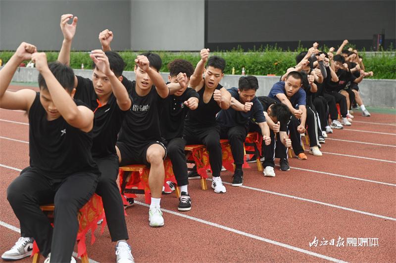 6月2日,内江第十一届大千龙舟文化节开幕式文艺演出龙狮表演《龙腾狮跃闹甜城》排练现场。