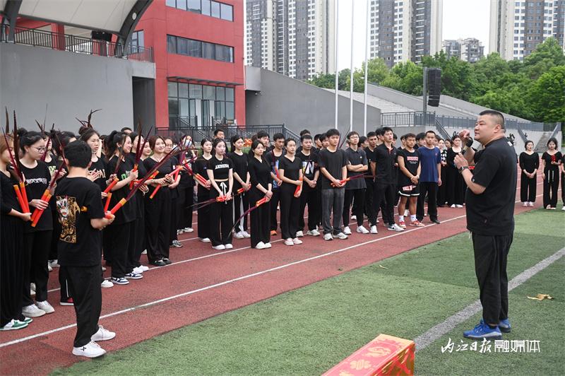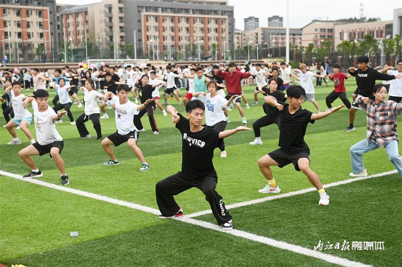 与此同时,在内江师范学院的田径场上,本次文艺节目的武术表演《大千武魂》的排练工作也在有条不紊地推进。该节目由100名武术表演者以刚劲有力的套拳、精彩绝伦的对打等各种武术形式,并辅以竹林、红扇等道具,让观众领略中华武术的精髓和神韵。