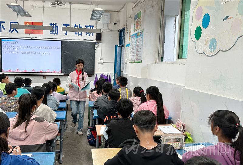 课间,当同学们玩耍嬉戏时,桂欣宇也常常带着几名小伙伴在校园的操场里、花园边和教室的走廊里捡纸片,清理墙壁上的污渍,让整个校园始终干净整洁。