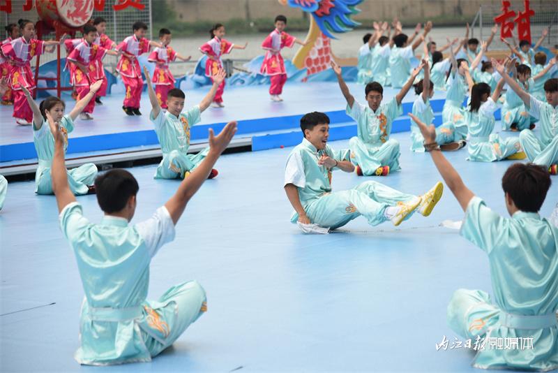 上午9点,随着10门电子礼炮鸣响,信鸽从空中掠过,文艺节目彩排正式拉开序幕。龙狮表演《龙腾狮跃闹甜城》、歌舞《赛龙舟》、民俗表演《甜都号子》轮番登场,用文艺表演展现端午的民风民俗,营造出喜庆的节日氛围。