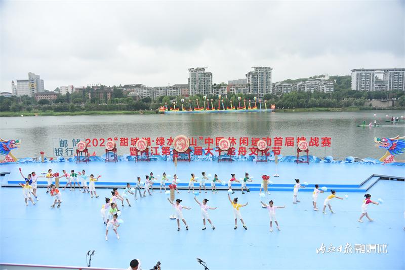 ▲6月16日,2023“甜城湖·绿水青山”中国休闲运动首届挑战赛暨内江第十一届大千龙舟文化节开幕式在活动主舞台彩排,图为尾声节目。