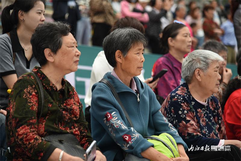 彩排现场吸引了不少市民围观,今年77岁的罗素芳全程举着手机,一边录像,一边赞叹。罗素芳是安岳人,其女儿在内江上班,也参与了龙舟节的文艺表演,几天前,她专程赶来内江,观看龙舟节,为女儿加油。“彩排都这么好看,正式演出肯定更安逸!”对于开幕式当天的演出,罗素芳十分期待。