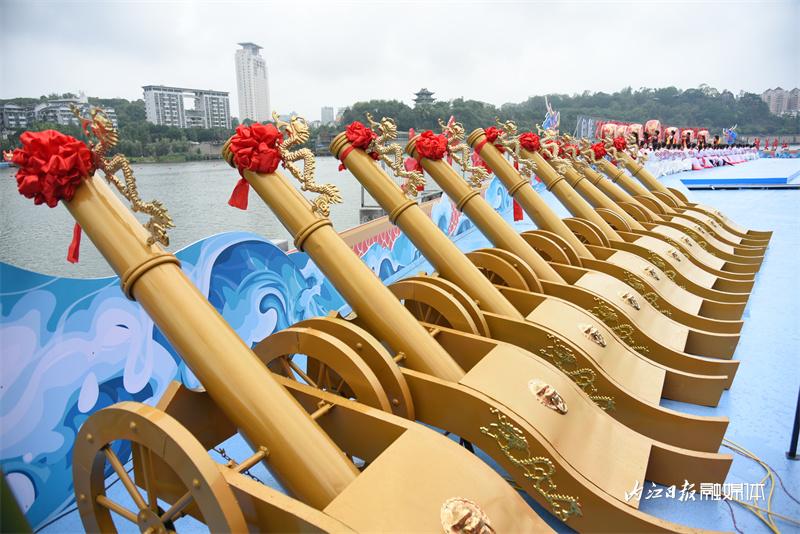 ▲6月16日,2023“甜城湖·绿水青山”中国休闲运动首届挑战赛暨内江第十一届大千龙舟文化节开幕式在活动主舞台彩排,图为电子礼炮。