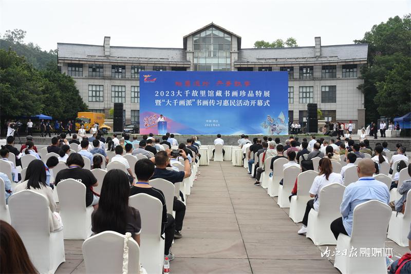 ▲6月17日,翰墨遗珍·丹青飘香——2023大千故里馆藏书画珍品特展暨“大千画派”书画传习惠民活动开幕式在大千园举行。