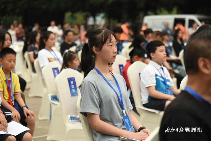 ▲6月17日,翰墨遗珍·丹青飘香——2023大千故里馆藏书画珍品特展暨“大千画派”书画传习惠民活动开幕式在大千园举行。图为参加活动的学生。