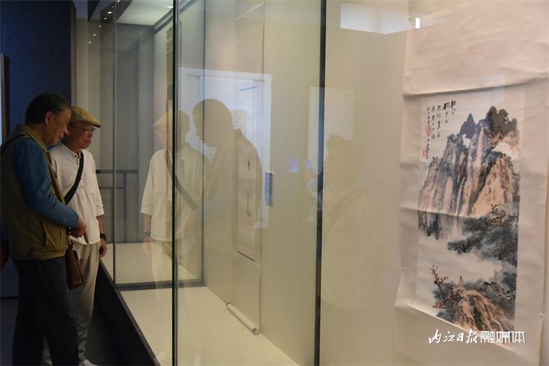 ▲6月17日,翰墨遗珍·丹青飘香——2023大千故里馆藏书画珍品特展暨“大千画派”书画传习惠民活动开幕式在大千园举行。图为参观张大千真迹。