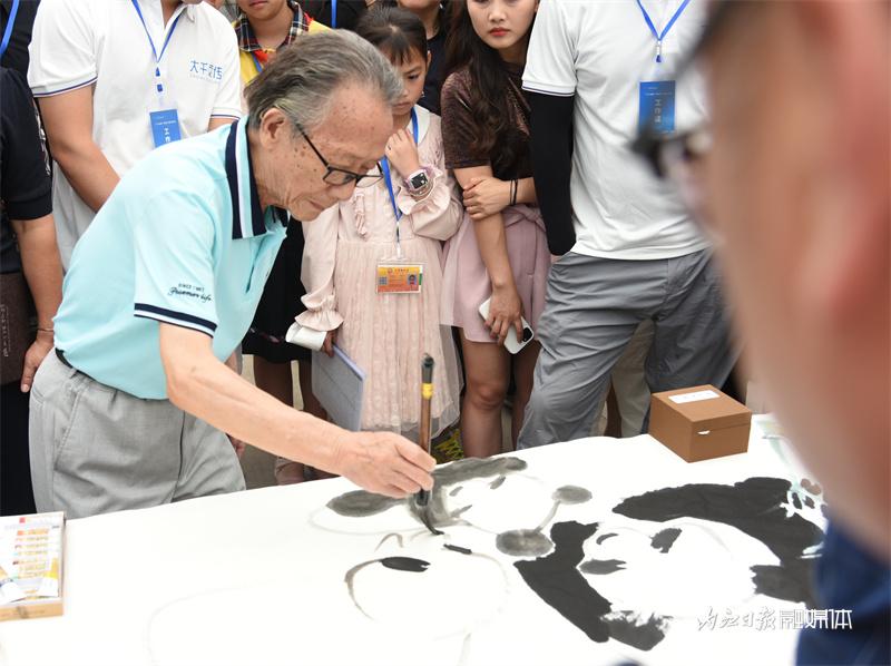 著名画家、中央文史研究馆书画院研究员、四川香格里拉彩墨画研究院院长邱笑秋被浓厚的传习氛围打动,现场挥毫,画下了一幅熊猫图,引来众多市民围观。