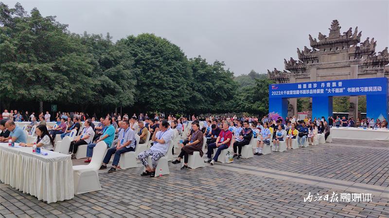 ▲6月17日,翰墨遗珍·丹青飘香——2023大千故里馆藏书画珍品特展暨“大千画派”书画传习惠民活动开幕式在大千园广场举行。图为活动现场。