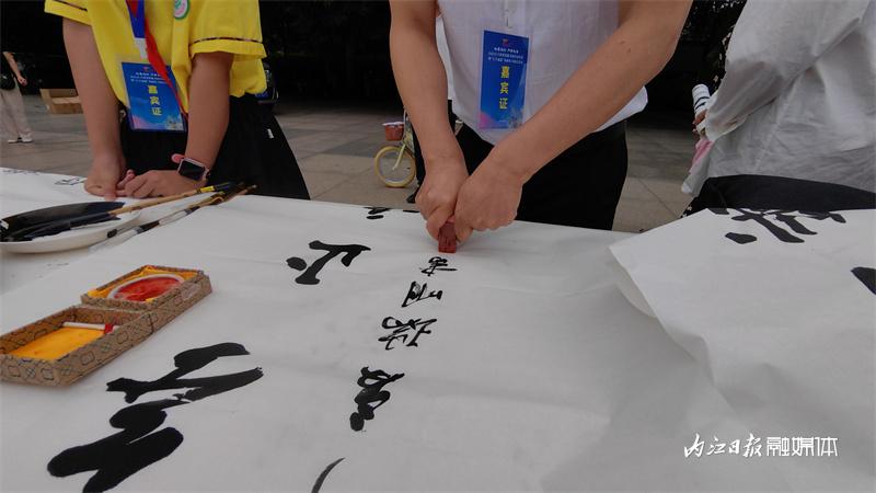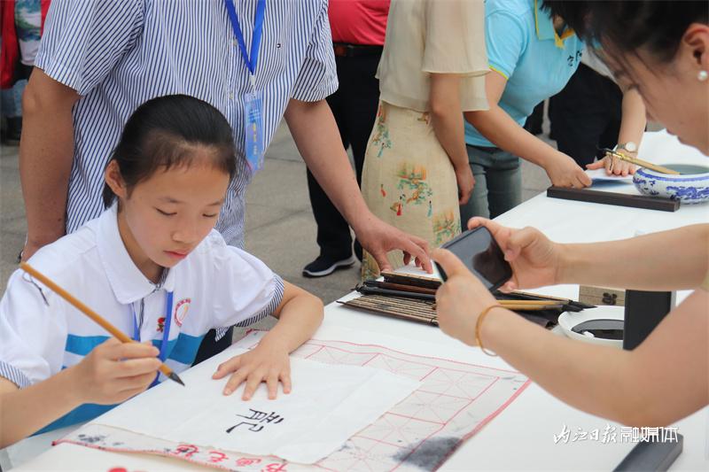 来自东兴区五星小学的学生肖弋笛说,参加此次活动很开心,是自己的一次“书画实习课”。