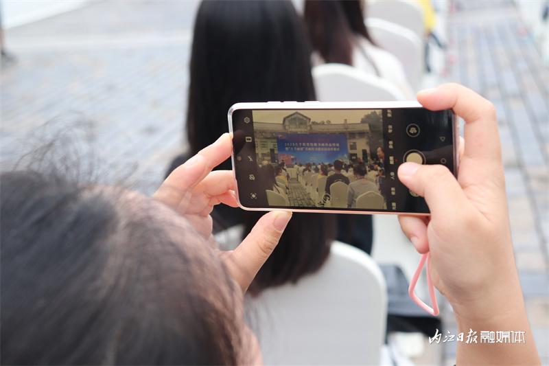 ▲6月17日,翰墨遗珍·丹青飘香——2023大千故里馆藏书画珍品特展暨“大千画派”书画传习惠民活动开幕式在大千园广场举行。图为市民拍照。