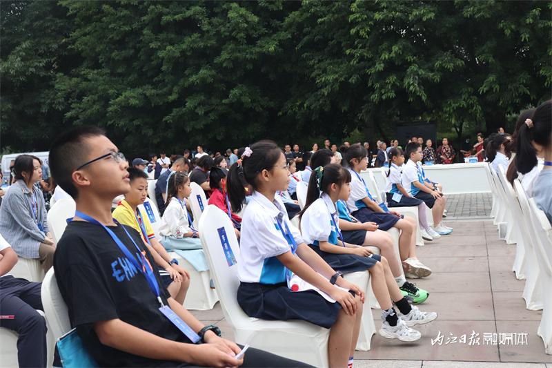 ▲6月17日,翰墨遗珍·丹青飘香——2023大千故里馆藏书画珍品特展暨“大千画派”书画传习惠民活动开幕式在大千园广场举行。图为青少年书画爱好者。