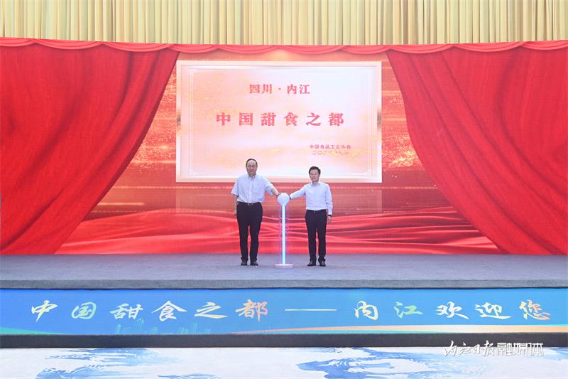 ▲6月18日,“中国甜食之都”共建启动仪式暨内江地方特色食品产业发展推进会举行。图为“中国甜食之都”授牌仪式。