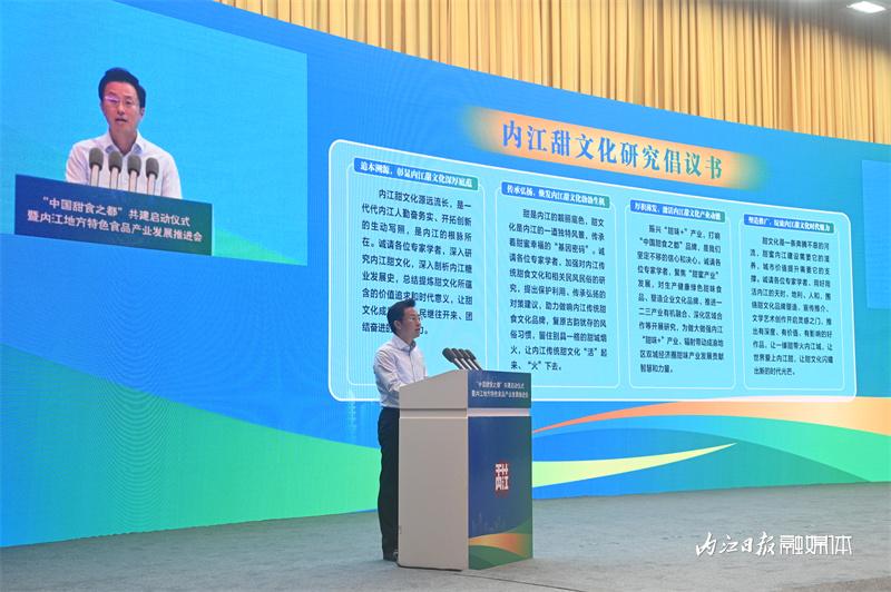 ▲6月18日,“中国甜食之都”共建启动仪式暨内江地方特色食品产业发展推进会举行。图为发布内江甜文化研究倡议书。