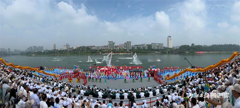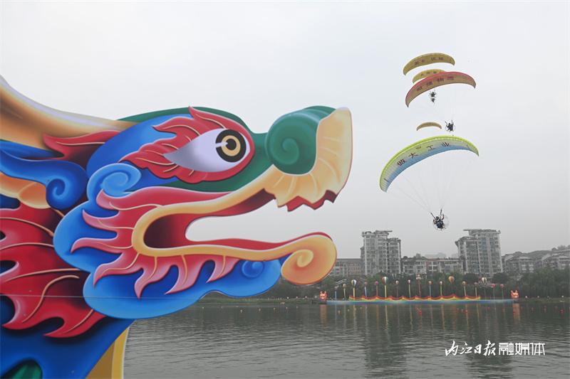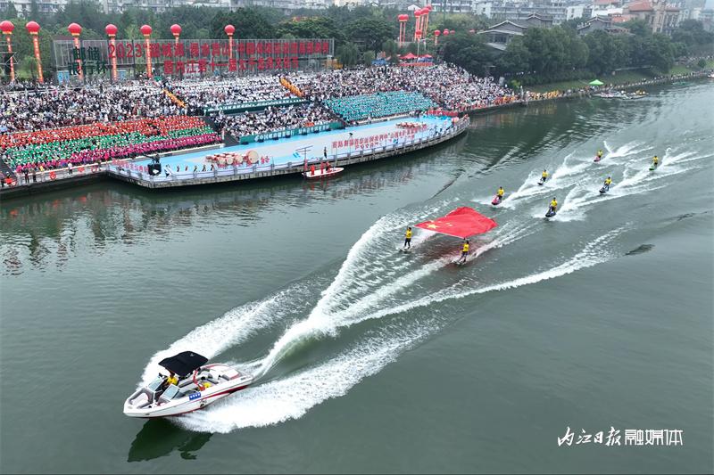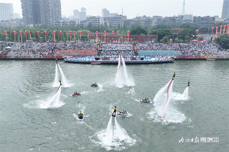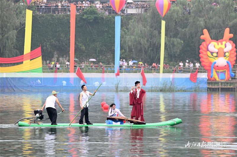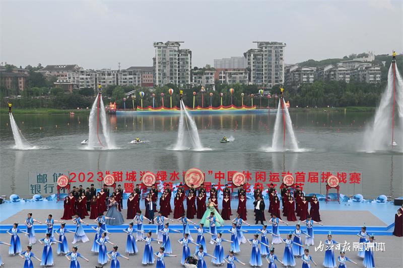6月18日,“邮储银行杯”2023“甜城湖·绿水青山”中国休闲运动首届挑战赛暨内江第十一届大千龙舟文化节正式开幕,精彩的文艺演出令现场观众大饱眼福,甜城湖的水上项目、龙舟赛和水上特技表演同样让人激情澎湃。