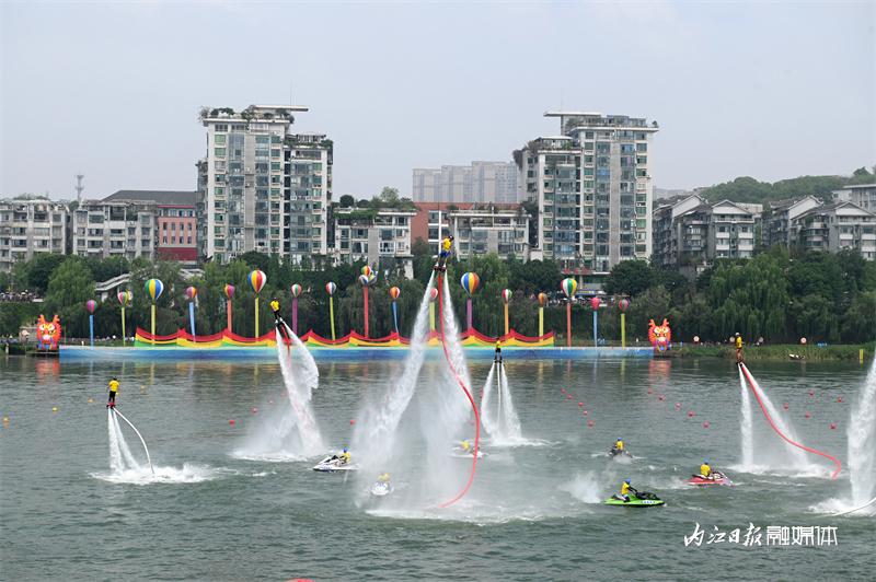 近年来,内江凭借甜城湖水上资源优势,紧紧围绕做好“水文章”,积极发展甜城湖水上运动项目,大力开发市域内水上运动、水上演艺和水上娱乐项目,着力打造内江市“体育+旅游”品牌赛事。6月20日,“邮储银行杯”2023年“甜城湖·绿水青山”中国休闲运动首届挑战赛将在甜城湖畔举行,为市民奉上水上摩托艇、水上蜘蛛人等水上特技表演。