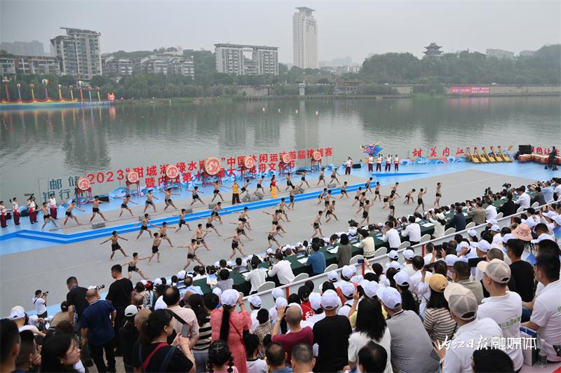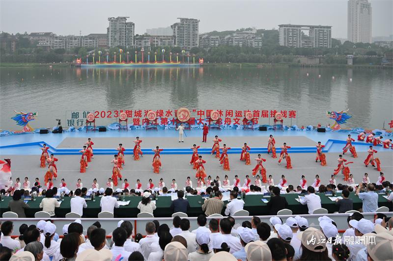 6月18日,“邮储银行杯”2023“甜城湖·绿水青山”中国休闲运动首届挑战赛暨内江第十一届大千龙舟文化节在甜城湖隆重开幕,精彩纷呈的文艺节目表演赢得了广大市民群众的一致好评。