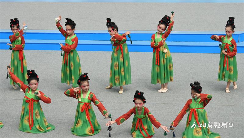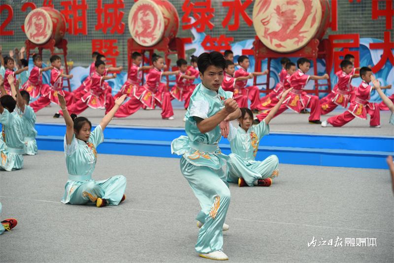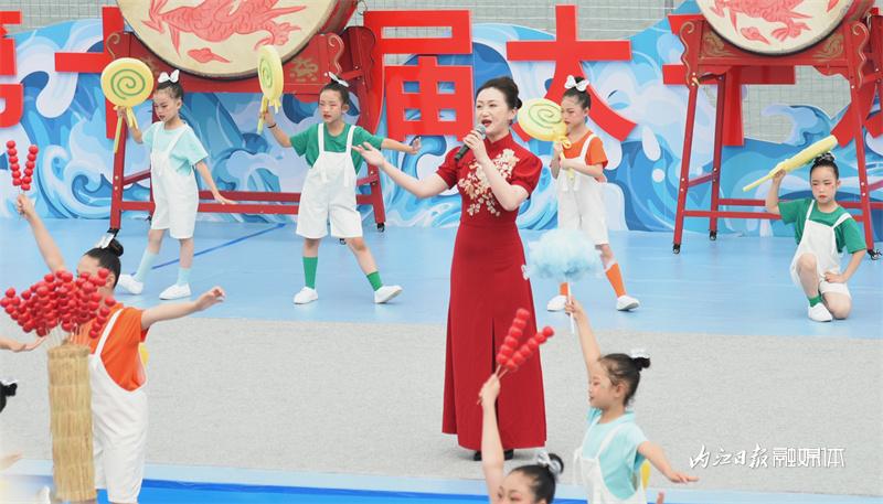 ▲6月18日,“邮储银行杯”2023“甜城湖·绿水青山”中国休闲运动首届挑战赛暨内江第十一届大千龙舟文化节在大洲广场主舞台举行,图为小演员。