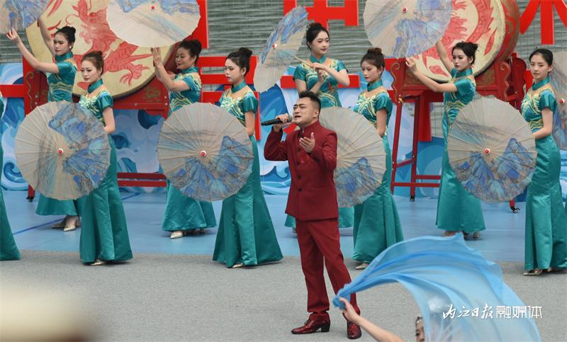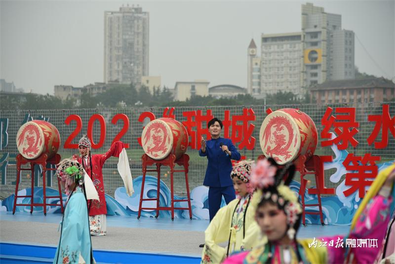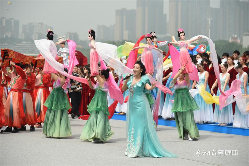 ▲6月18日,“邮储银行杯”2023“甜城湖·绿水青山”中国休闲运动首届挑战赛暨内江第十一届大千龙舟文化节在大洲广场主舞台举行,图为歌曲《甜城内江》表演现场。