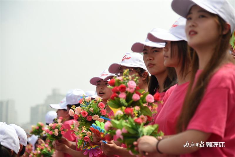▲6月18日,“邮储银行杯”2023“甜城湖·绿水青山”中国休闲运动首届挑战赛暨内江第十一届大千龙舟文化节在大洲广场主舞台举行,图为合影留念。