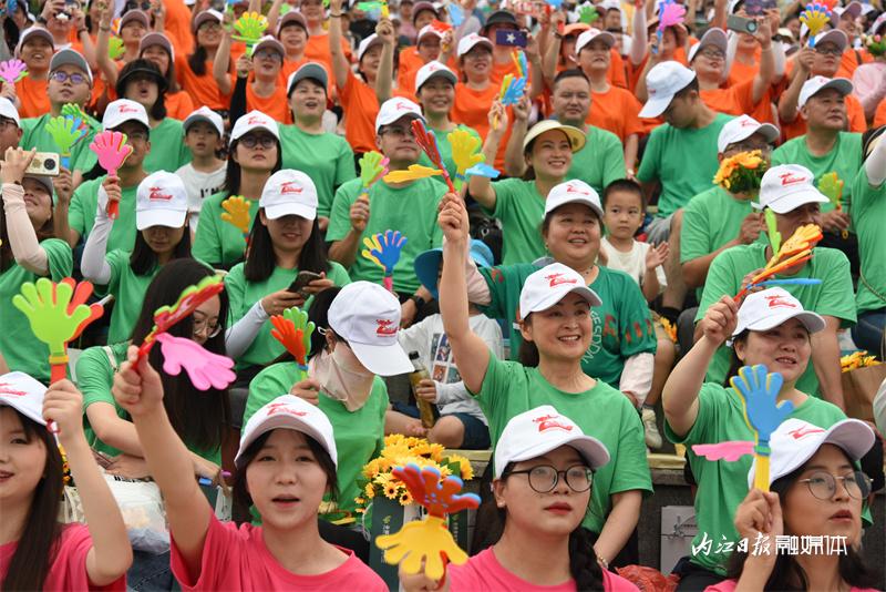 ▲6月18日,“邮储银行杯”2023“甜城湖·绿水青山”中国休闲运动首届挑战赛暨内江第十一届大千龙舟文化节在大洲广场主舞台举行,图为观众方阵。