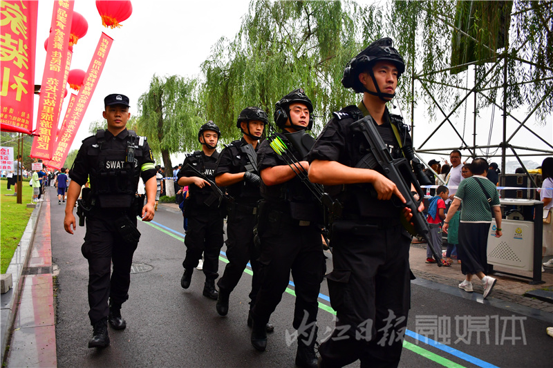 据内江市公安局有关负责人介绍,为确保本届龙舟节顺利、平安进行,内江市公安局主要领导高度重视,多次实地查看安保情况,并制定详细的安保方案。开幕式当天,现场共投入安保力量3388人,其中公安民警1858人,采用多警种协同作战,水、陆、空立体守护,确保了开幕式平安“着陆”。