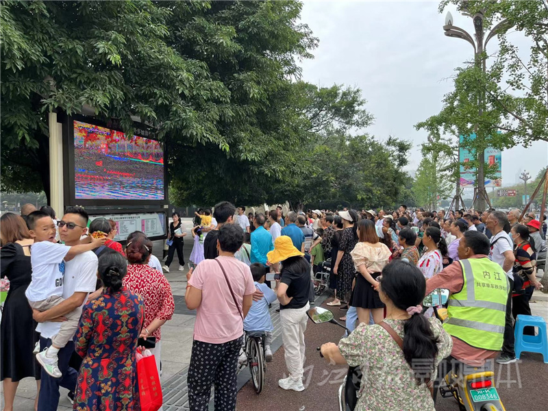此外,内江日报户外多媒体阅报系统上的视频直播也吸引了不少市民驻足观看。“我本来打算看一会儿就走,没想到节目太精彩了!”市民李淑华经过内江日报户外多媒体阅报系统时,刚好看到大屏幕上在直播龙舟节开幕式。