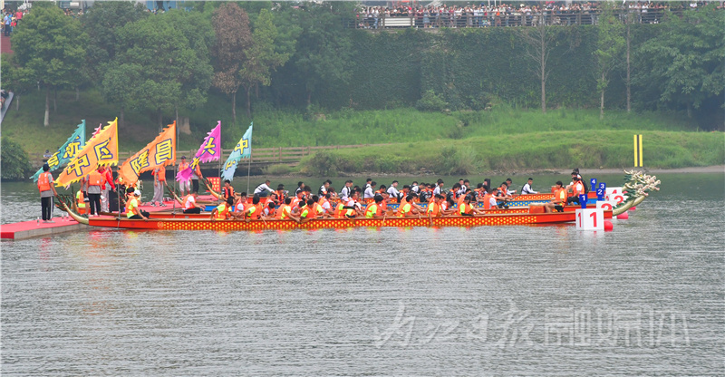“获得本届龙舟公开赛第八名的是内江高新区龙舟队、获得第七名的是内江路桥集团龙舟队……获得第二名的是内江建工集团龙舟队……”大会裁判长顿了顿声调宣布道,“获得第一名的是内江市资中县龙舟队。”